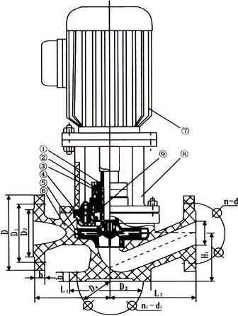 ■SL型玻璃鋼化工管道泵結(jié)構(gòu)圖: