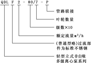 ■QDLF型不銹鋼立式多級(jí)泵型號(hào)意義: