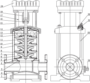 ■QDLF型不銹鋼立式多級(jí)泵結(jié)構(gòu)圖: