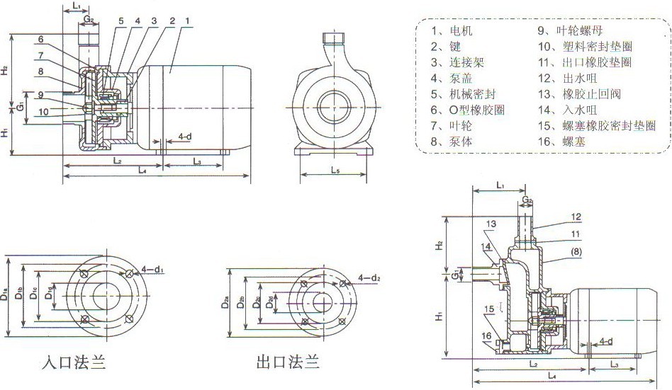 ■SFB型不銹鋼耐腐蝕離心泵材料說明: