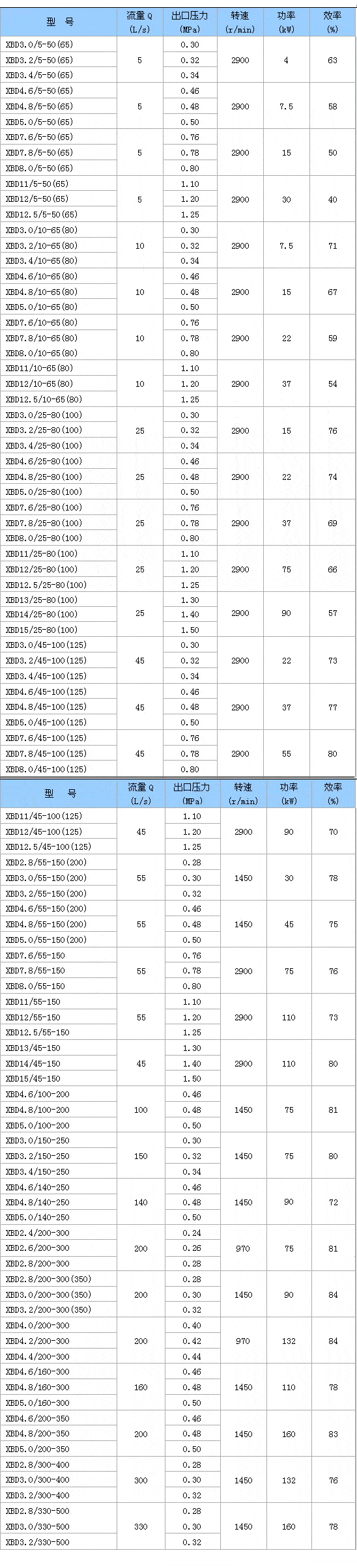 五、XBD-W臥式單級(jí)消防泵 性能參數(shù)表
