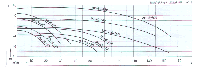 一.IMD氟塑料磁力泵概 述: IMD系列產(chǎn)品是公司總結(jié)20年的磁力泵制造經(jīng)驗研發(fā)的大功率高揚程磁力驅(qū)動泵 ,外型及安裝尺寸均按ISO國際標準設(shè)計制造,整體結(jié)構(gòu)采用電機直聯(lián)的后拉式(我公司專利),由中間支架支撐,結(jié)構(gòu)緊湊,拆卸維護方便,性能范圍寬;傳遞扭矩的磁鋼選用良好的稀土材料永磁體—“釹鐵硼”制造內(nèi)外磁體,使用新型非金屬材料內(nèi)襯F46制成的隔離套組合具有高強度的力學(xué)性能,徹底消除了一般磁力泵具有的磁渦流損耗,提高了整機的效率。可輸送高濃度,密度大于1.84 t/m3的強腐蝕介質(zhì);主要部件采用鋼襯F46,泵體強度高,能耐所有強酸、強堿的腐蝕。特別適合于輸送易燃、易爆、有毒、有揮發(fā)性、大比重的化學(xué)介質(zhì)?,F(xiàn)已批量投放市場,在很多項目上替代了進口磁力泵,受到用戶的廣泛好評。