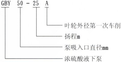 ■GBY型液下式濃硫酸化工泵型號(hào)意義:
