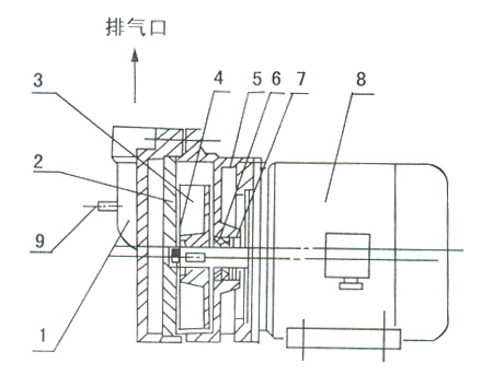 ■SK型直聯(lián)式水環(huán)真空泵工作原理及結(jié)構(gòu)圖: