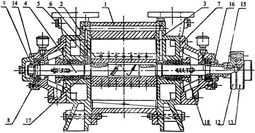 1 | 泵體 | 7 | 軸承瓦架 | 13 | 電機聯(lián)軸器 |