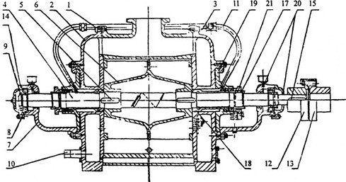 7 | 軸承瓦架 | 14 | 軸承蓋 | 21 | 填料函壓蓋 |