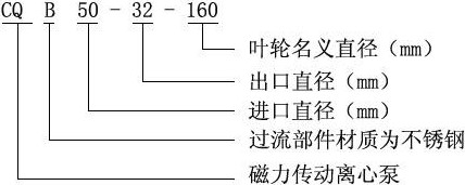 ■CQB型不銹鋼磁力離心泵型號意義: