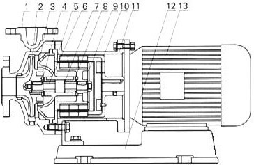 8 | 軸承 | 9 | 內(nèi)磁鋼總成 | 10 | 外磁鋼總成 | 11 | 聯(lián)接架 | 12 | 底座 | 13 | 電機(jī) |