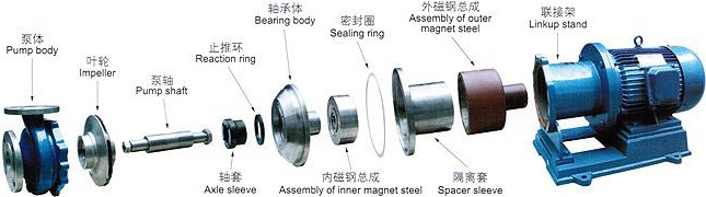 ■CQB型不銹鋼磁力離心泵爆炸圖:
