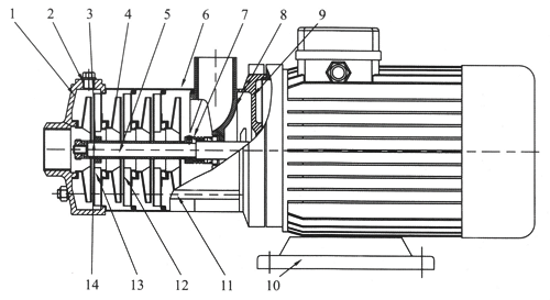 ■CHLF型不銹鋼輕型分段臥式多級泵結(jié)構(gòu)圖: