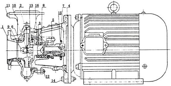 9 | 葉輪螺母 | 10 | 外舌止退墊圈 | 11 | 四方螺栓 | 12 | 雙頭螺栓 | 13 | 鍵 | 14 | 螺栓 | 15 | 緊定螺釘 | 16 | 填料 |