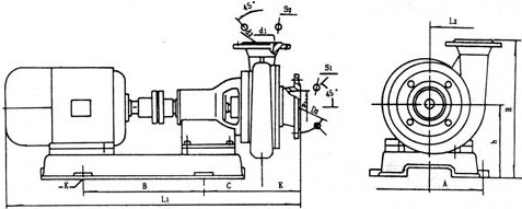 泵型 | A | B | C | E | H | h | L1 | L2 | Dl | D2 | Sl | dl | d2 | S2 | K |