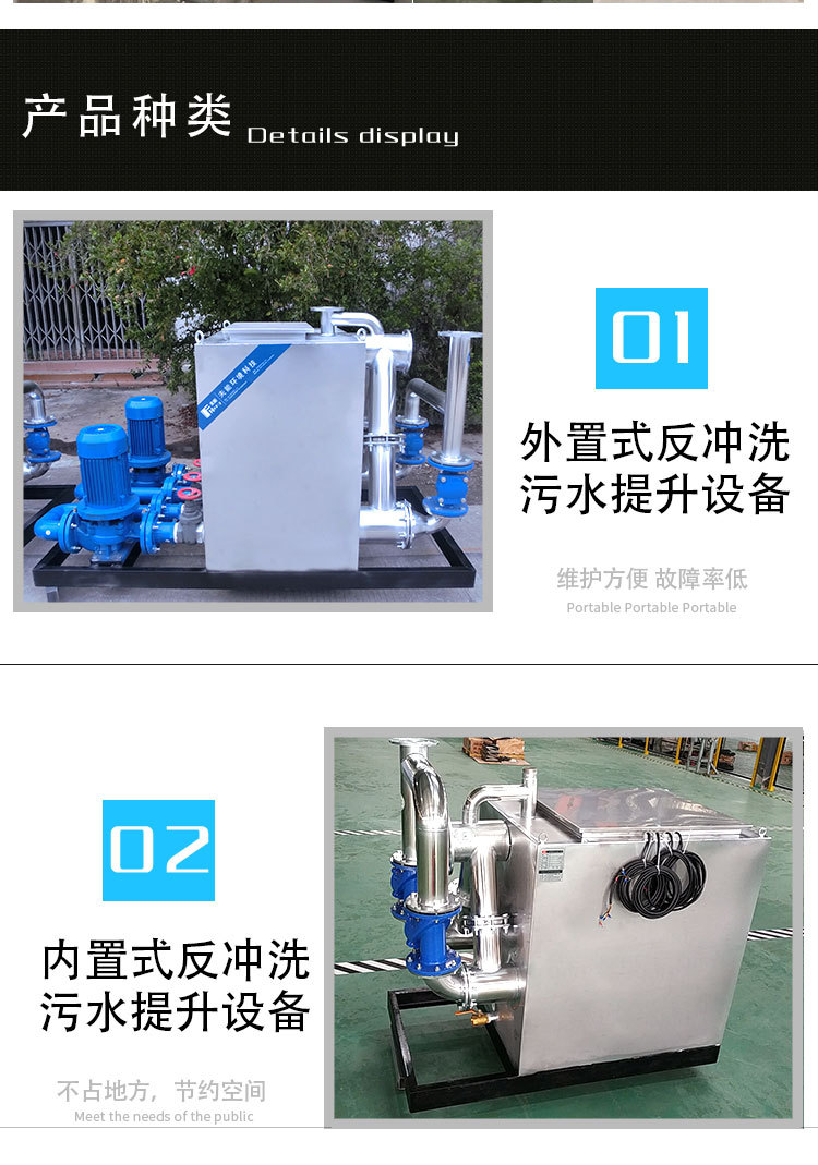 反沖洗污水提升設備,類似一個活動的污水處理提升裝置,全面替代傳統(tǒng)的挖積水坑,設置污水泵的方式,污水每次排空,不會造成空氣的污染產生異味,另外污水提升器還配有洗衣房排水專用設備。污水提升器高標準的質量保證,確保更長的使用壽命。