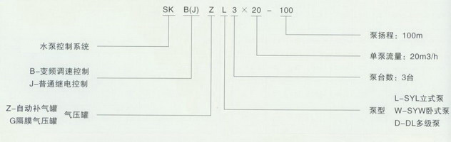 SKJ型全自動氣壓供水設(shè)備型號意義: