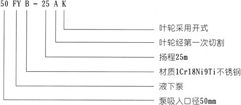 ■FY型不銹鋼耐腐蝕液下化工泵型號(hào)意義:
