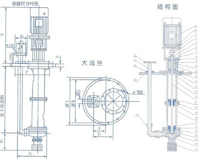 ⑤泵的下部裝有水軸承,液下深度超過(guò)1米的泵,設(shè)有中間水軸承,保證泵運(yùn)行平穩(wěn)可靠。