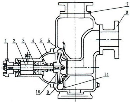 在一些泵的軸承體底部還設(shè)有冷卻室。當(dāng)軸承發(fā)熱引起軸承體溫升超過70℃時,可在冷卻室處通過任意一只冷卻液管接頭.注入冷卻液循環(huán)冷卻。泵內(nèi)部防止液體由高壓區(qū)向低壓區(qū)泄漏的密封機(jī)構(gòu)是前后密封環(huán),前密封環(huán)裝在泵體上,后密封環(huán)裝在軸承體上,當(dāng)泵經(jīng)長期運轉(zhuǎn)密封環(huán)磨損到一定程度,并影響到泵的效率和自吸性能時,應(yīng)給予更換。